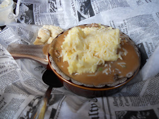 Including my meal... Shepard's pie! This dish was so awesome! The waitress said this was her favorite thing on the menu, so I took her word for it and ordered it. On the side was a raisin biscuit with honey butter.